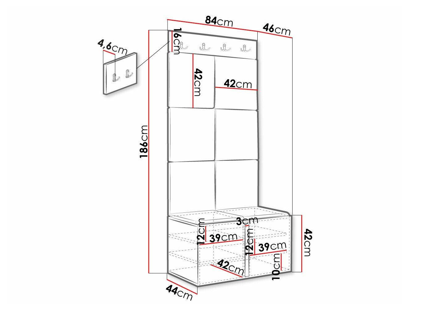 Skoskab dimensioner42 x 84 x 44 cm