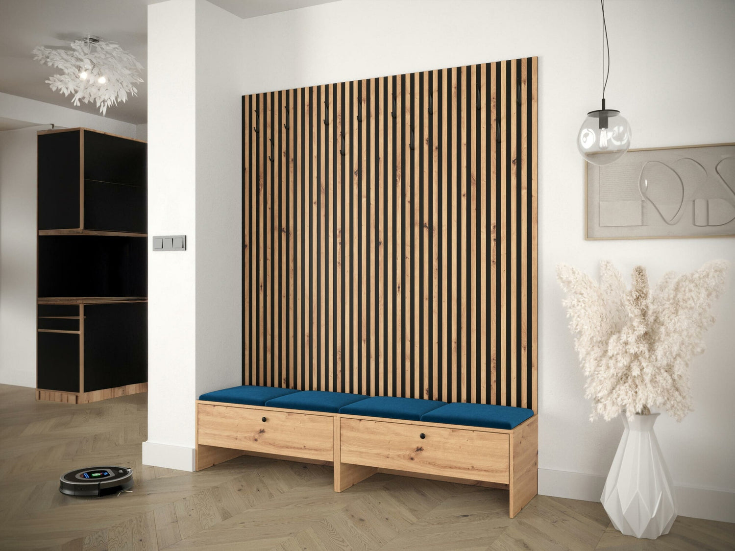 Blødt vægpanel, et elegant og funktionelt valg til dit hjem. Takket være den hævede overflade skaber panelet en unik 3D-effekt. Disse bløde paneler vil give mere hygge og komfort, og de vil desuden se ud som et dekorativt element. På grund af deres unikke egenskaber absorberer de lyd. Brug panelerne som en separat rumfunktion eller til at dække hele væggen. Panelet består af en 8 mm tyk plade, som gør det nemmere at montere på væggen. Blødheden og formen sikres af et 3 cm tykt syntetisk stof og det materiale, der dækker det. Du kan vælge et panelstof fra en bred vifte af farver, så du er sikker på at finde det, der passer bedst til din boligindretning.