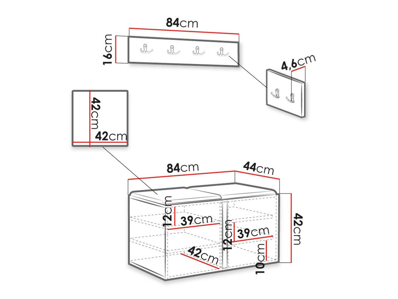 Bøjlens dimensioner16 x 84 x 4.6 cm