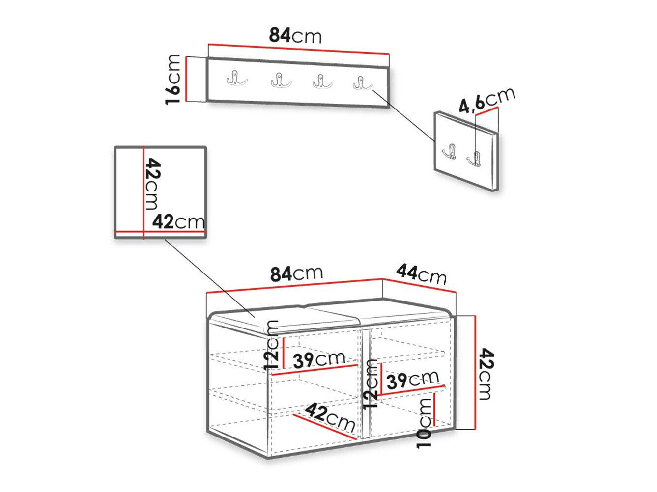 Bøjlens dimensioner16 x 84 x 4.6 cm