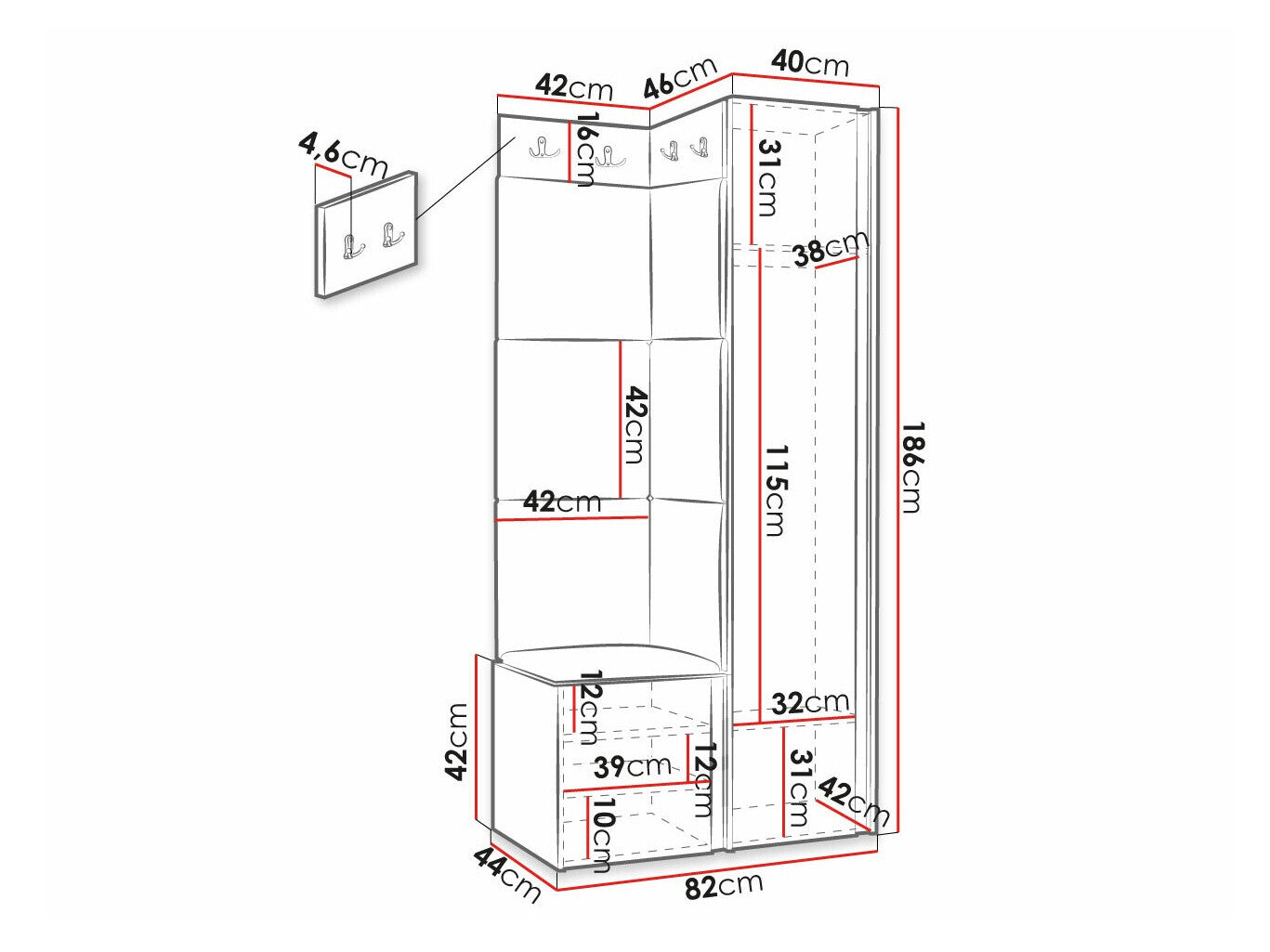 Dimensioner på garderobeskabe186 x 40 x 46 cm