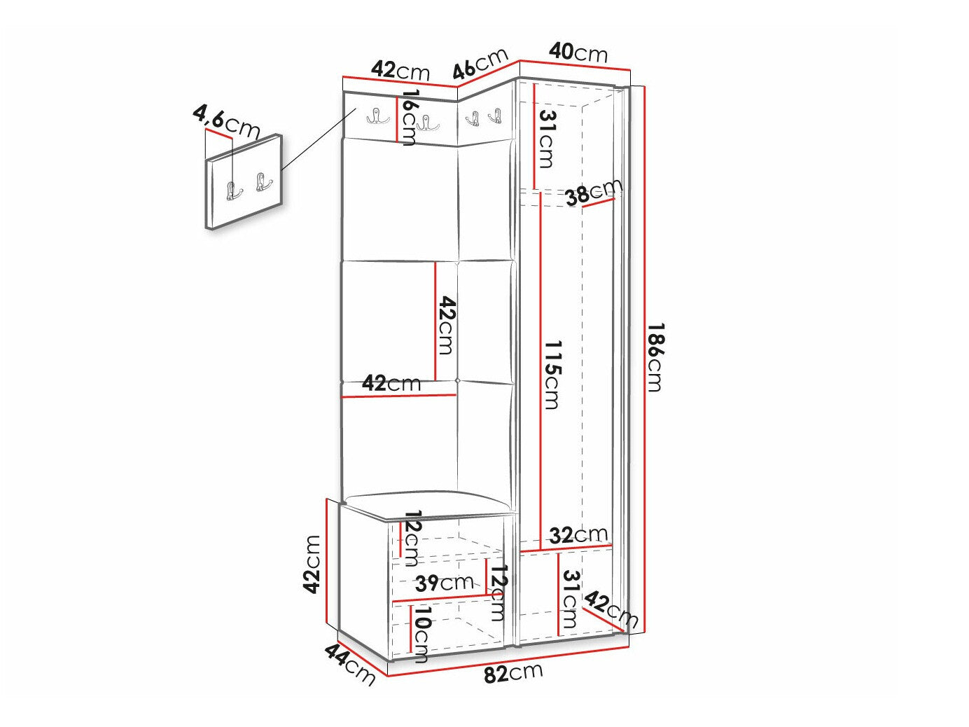 Dimensioner på garderobeskabe186 x 40 x 46 cm