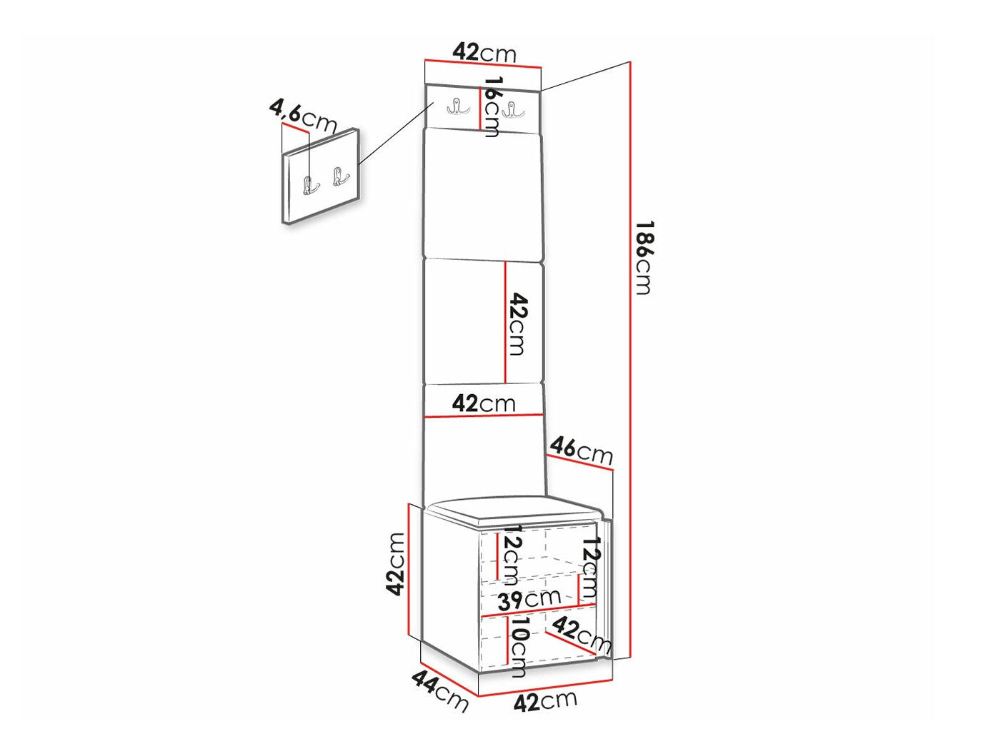 16 x 42 x 4.6 cm