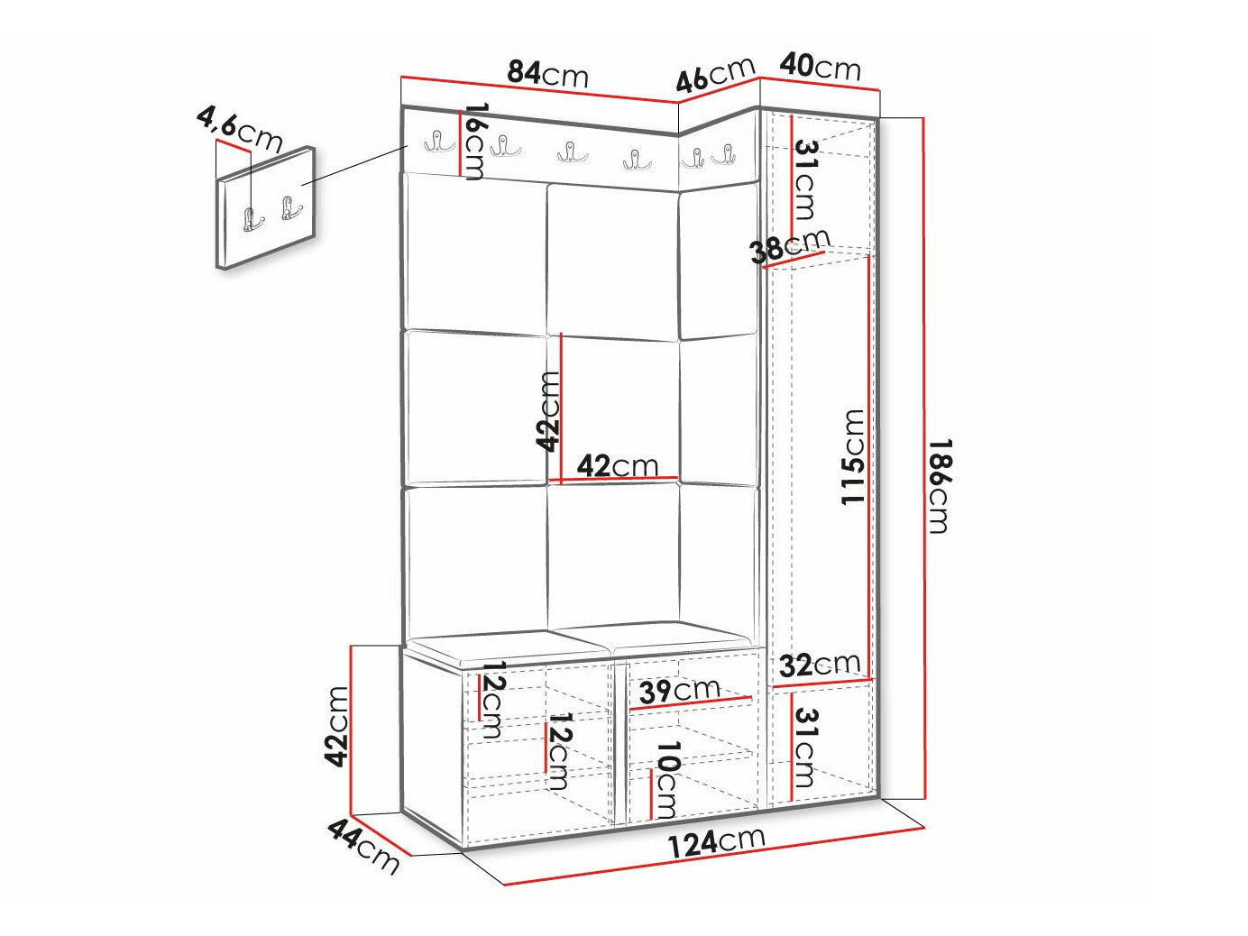 Dimensioner på garderobeskabe186 x 40 x 46 cm