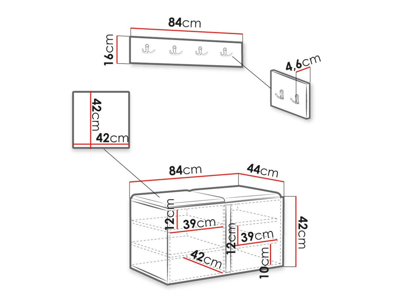 Skoskab dimensioner42 x 84 x 44 cm