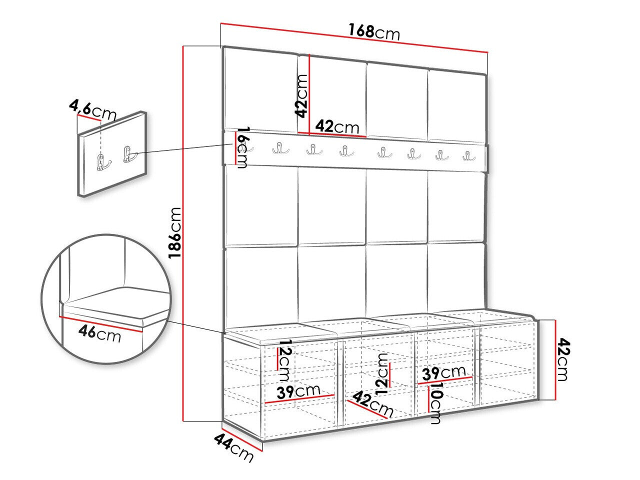 Skoskab dimensioner42 x 168 x 45.6 cm