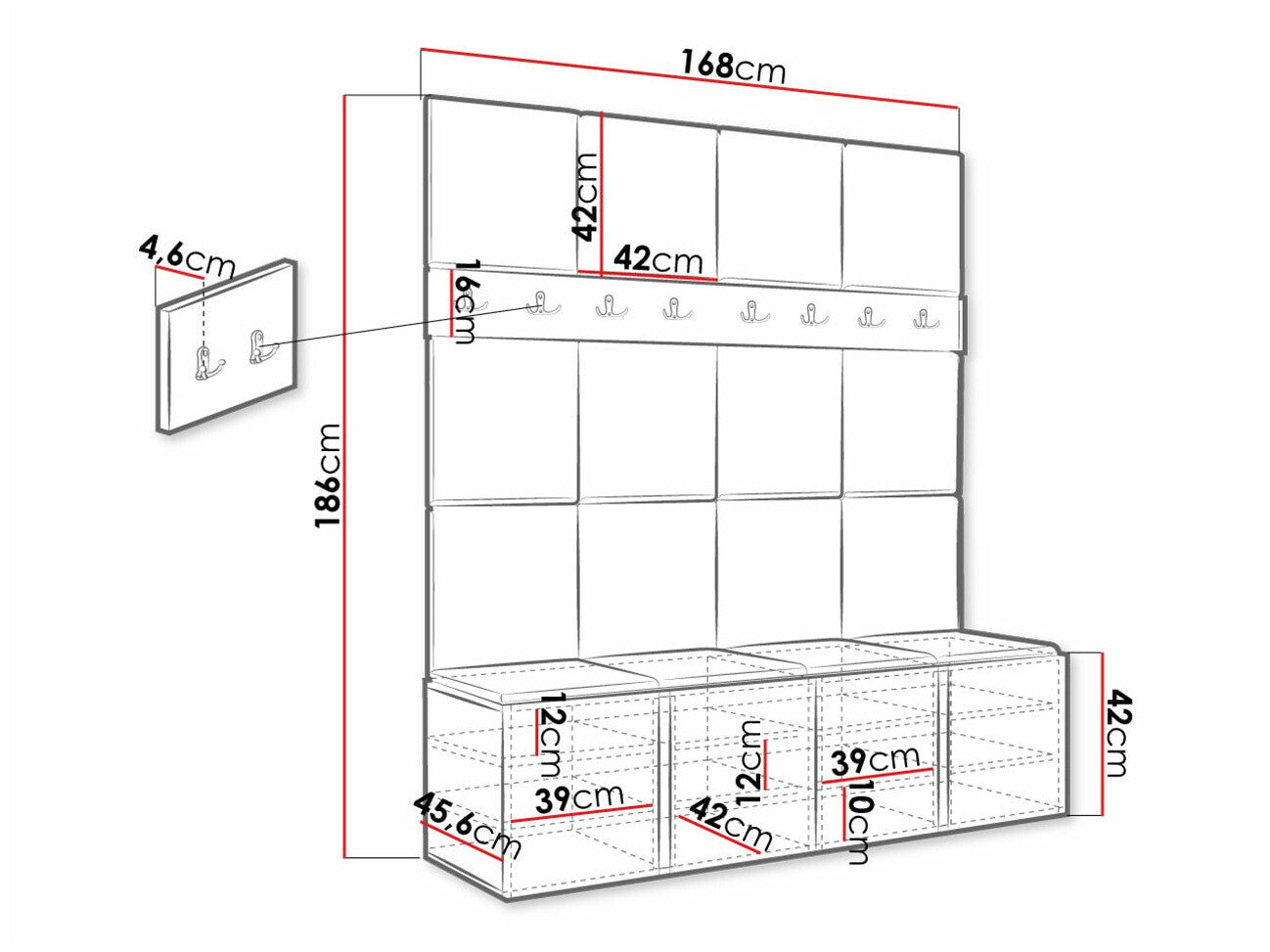 Skoskab dimensioner42 x 168 x 45.6 cm