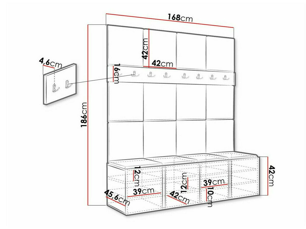 Skoskab dimensioner42 x 168 x 45.6 cm