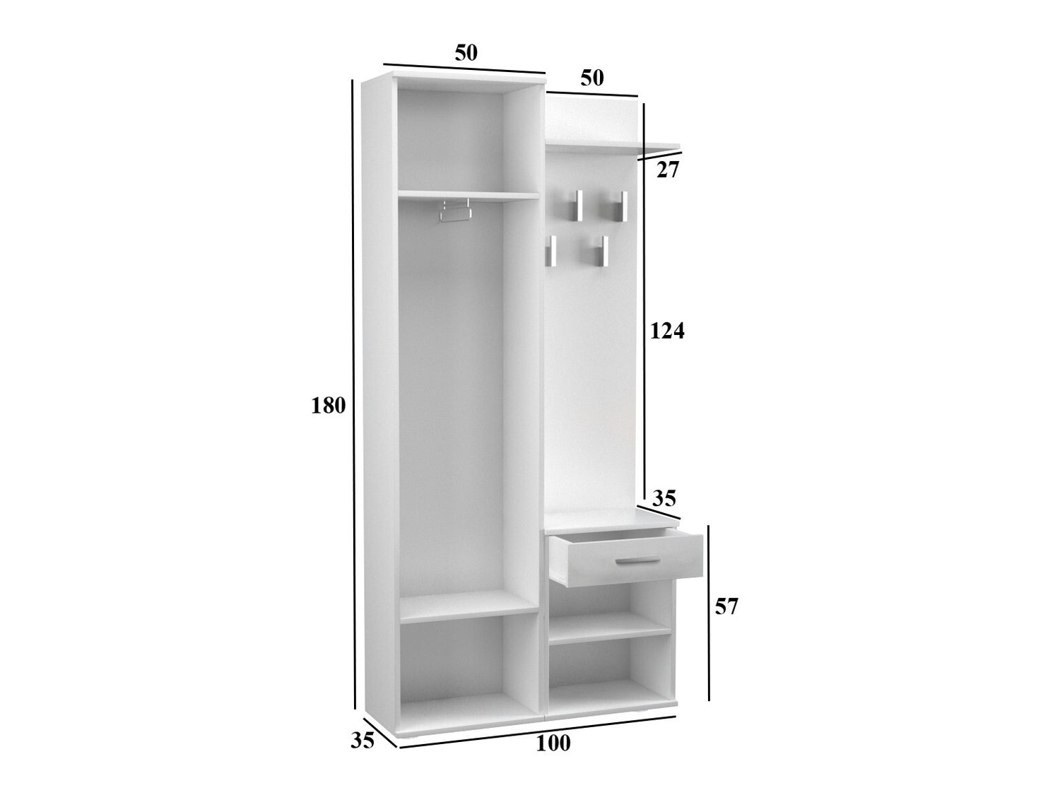 Dimensioner på garderobeskabe180 x 50 x 35 cm