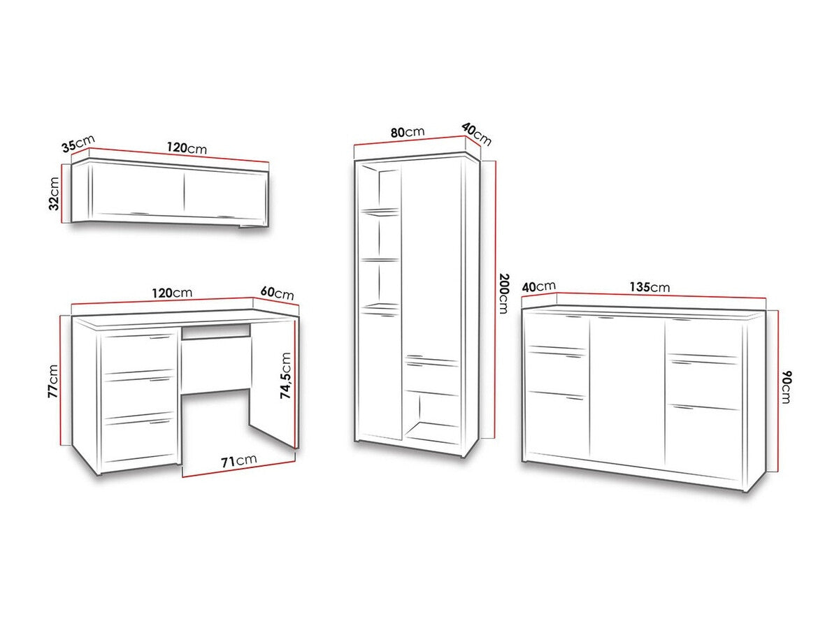 Hængende skabs dimensioner32 x 120 x 35 cm