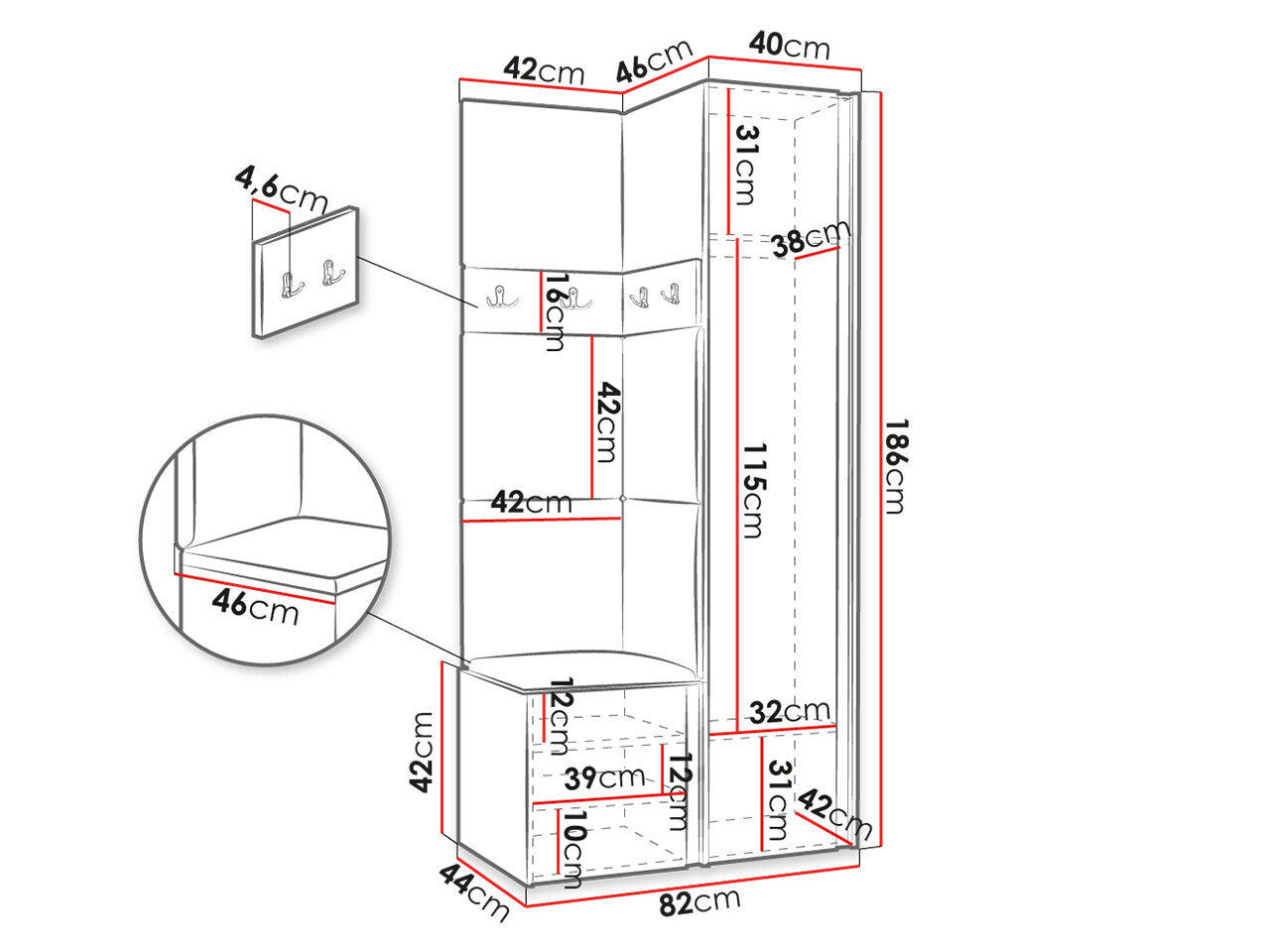 Dimensioner på garderobeskabe186 x 40 x 44 cm