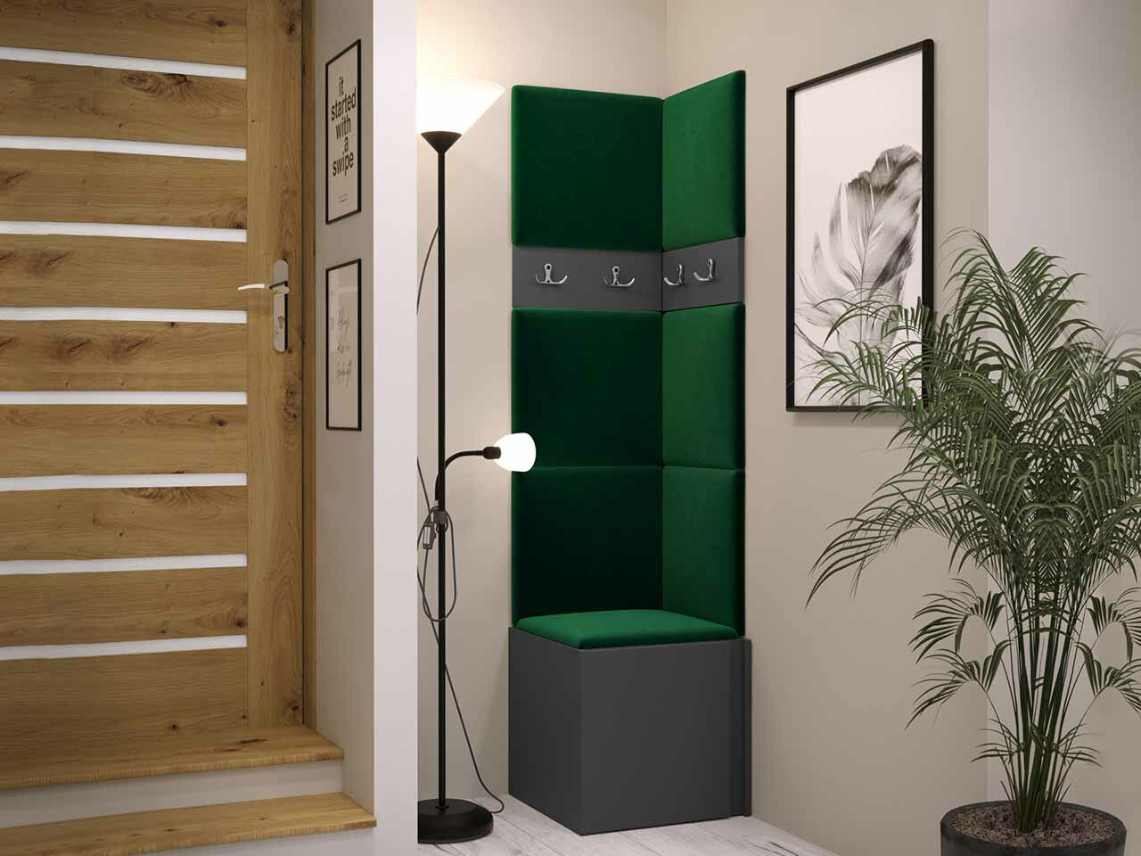 Blødt vægpanel, et elegant og funktionelt valg til dit hjem. Takket være den hævede overflade skaber panelet en unik 3D-effekt. Disse bløde paneler vil give mere hygge og komfort, og de vil desuden se ud som et dekorativt element. På grund af deres unikke egenskaber absorberer de lyd. Brug panelerne som en separat rumfunktion eller til at dække hele væggen. Panelet består af en 8 mm tyk plade, som gør det nemmere at montere på væggen. Blødheden og formen sikres af et 3 cm tykt syntetisk stof og det materiale, der dækker det. Du kan vælge et panelstof fra en bred vifte af farver, så du er sikker på at finde det, der passer bedst til din boligindretning.