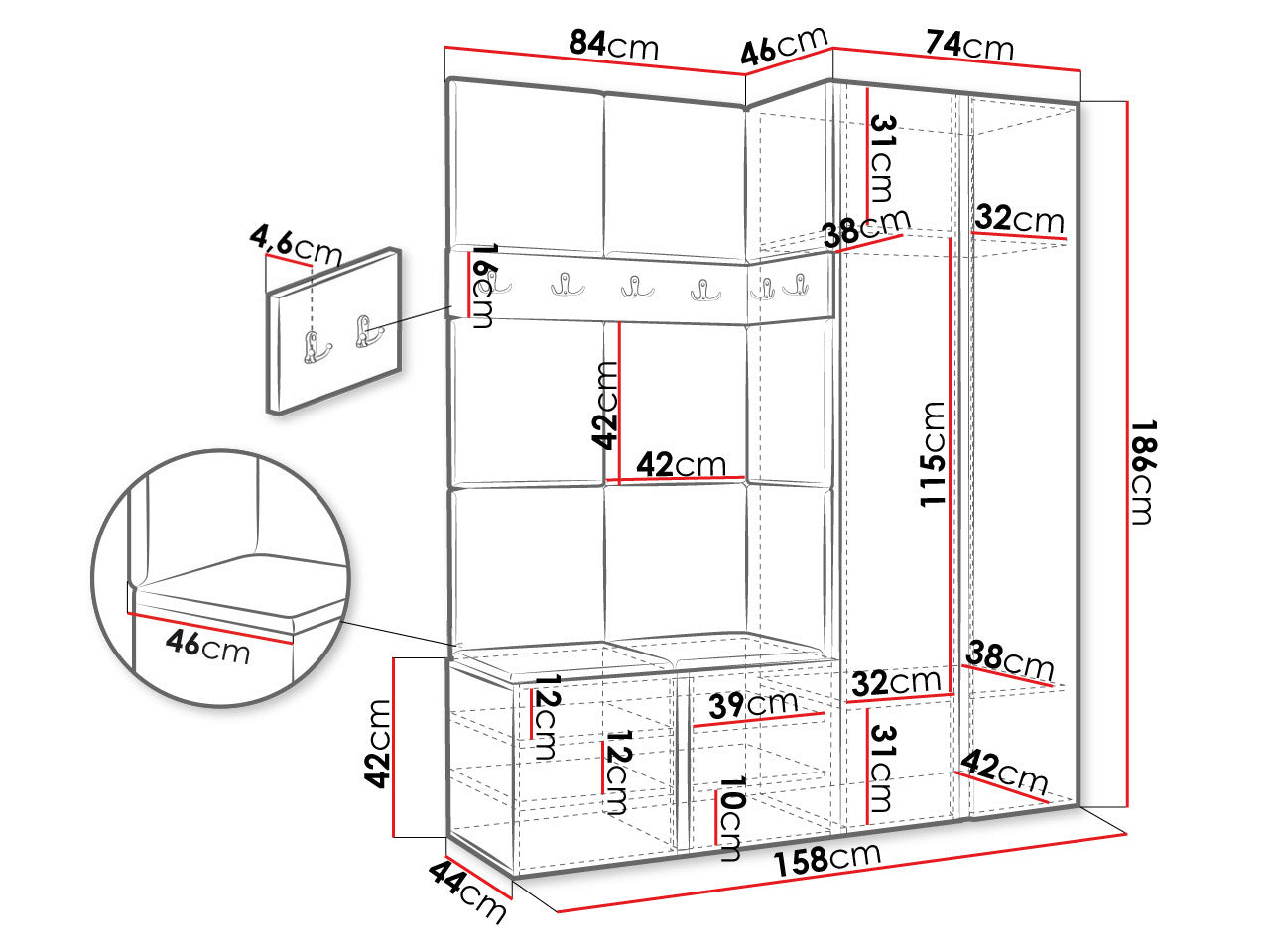 16 x 84 x 4.6 x 42 x 4.6 cm