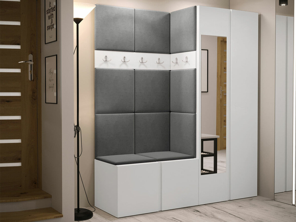 Blødt vægpanel, et elegant og funktionelt valg til dit hjem. Takket være den hævede overflade skaber panelet en unik 3D-effekt. Disse bløde paneler vil give mere hygge og komfort, og de vil desuden se ud som et dekorativt element. På grund af deres unikke egenskaber absorberer de lyd. Brug panelerne som en separat rumfunktion eller til at dække hele væggen. Panelet består af en 8 mm tyk plade, som gør det nemmere at montere på væggen. Blødheden og formen sikres af et 3 cm tykt syntetisk stof og det materiale, der dækker det. Du kan vælge et panelstof fra en bred vifte af farver, så du er sikker på at finde det, der passer bedst til din boligindretning.