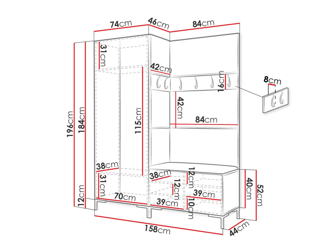 Dimensioner på garderobeskabe196 x 74 x 46 cm