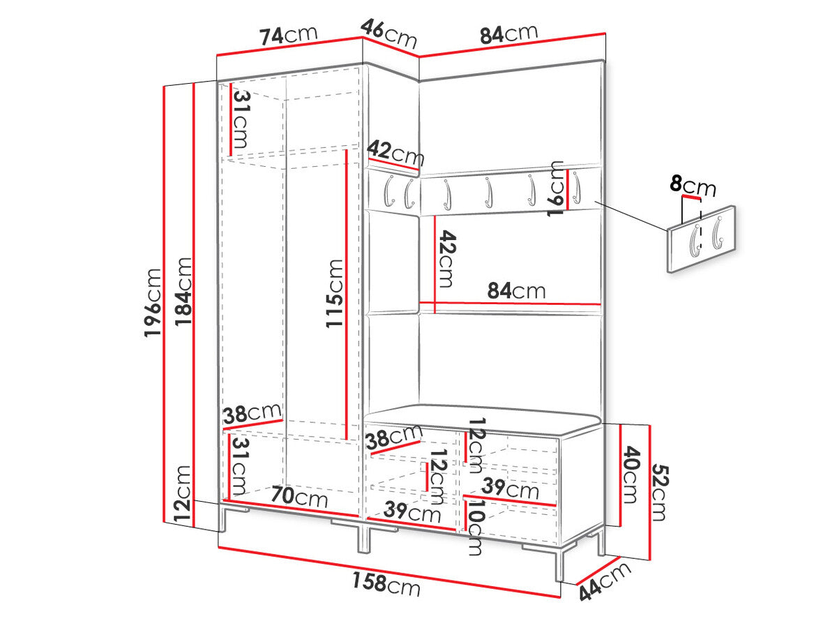 16 x 84 x 8 x 42 x 8 cm