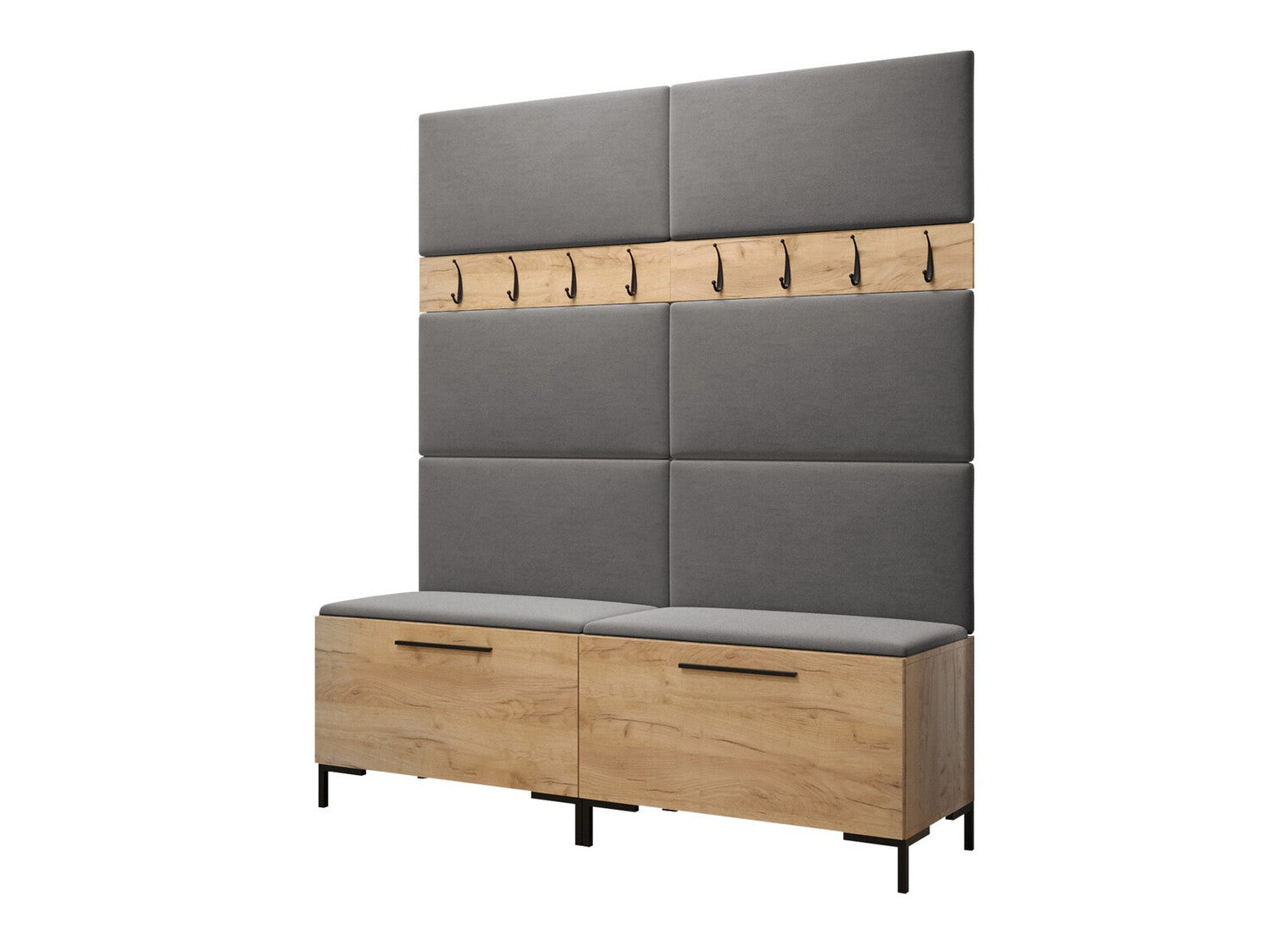 Blødt vægpanel, et elegant og funktionelt valg til dit hjem. Takket være den hævede overflade skaber panelet en unik 3D-effekt. Disse bløde paneler vil give mere hygge og komfort, og de vil desuden se ud som et dekorativt element. På grund af deres unikke egenskaber absorberer de lyd. Brug panelerne som en separat rumfunktion eller til at dække hele væggen. Panelet består af en 8 mm tyk plade, som gør det nemmere at montere på væggen. Blødheden og formen sikres af et 3 cm tykt syntetisk stof og det materiale, der dækker det. Du kan vælge et panelstof fra en bred vifte af farver, så du er sikker på at finde det, der passer bedst til din boligindretning.
