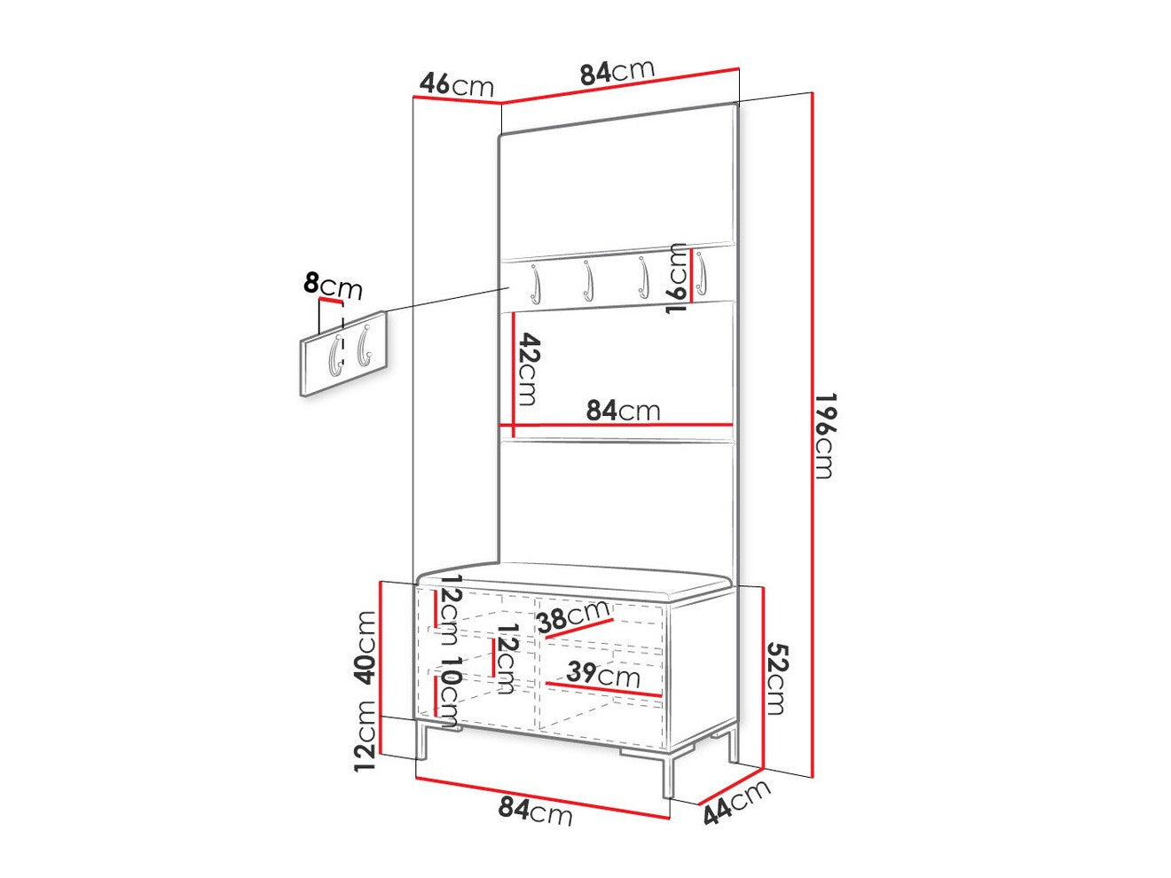 16 x 84 x 8 cm