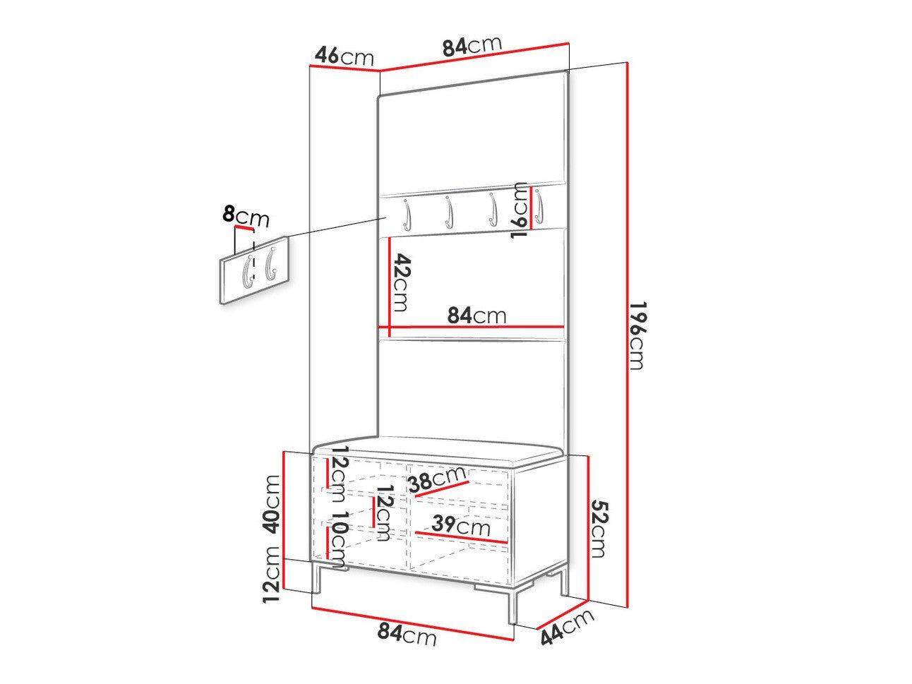 Skoskab dimensioner52 x 84 x 44 cm