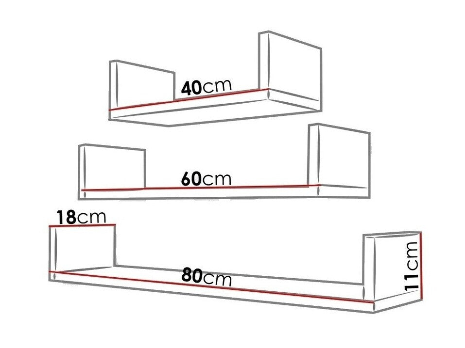 Hængende reolmål11 x 40 x 18 x 60 x 18 x 80 x 18 cm