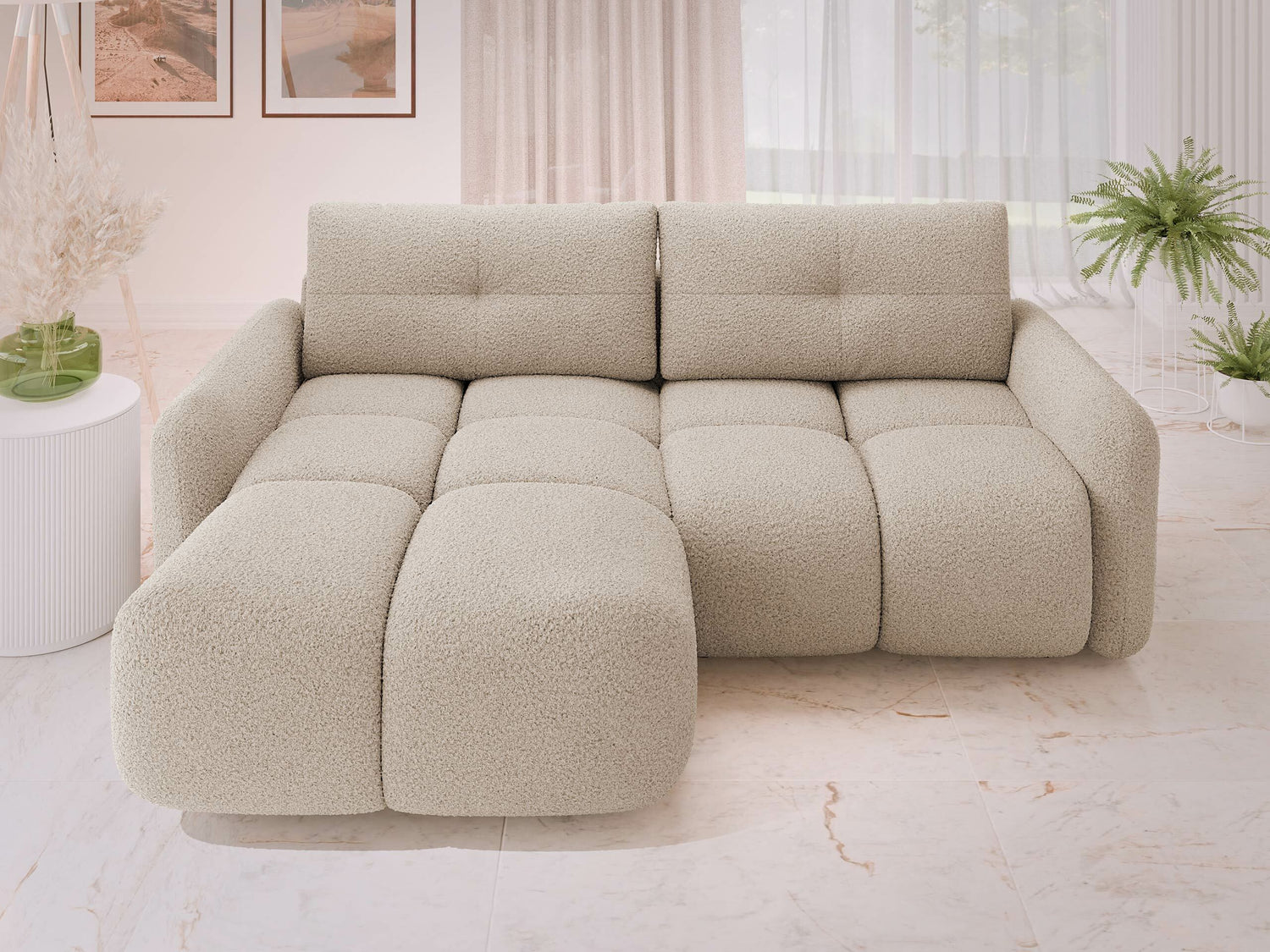 "Boucle" (Bouclé) stof skiller sig ud med sit unikke teksturerede mønster, skabt af løkker og knuder i forskellige størrelser. Dette karakteristiske træk giver møbler enestående karakter og en hyggelig følelse. Stoffets overflade kan være blød eller uldagtig i tekstur. Takket være dens robuste struktur bevarer dette stof sin form godt, hvilket gør det til et fremragende valg til sofaer, lænestole og andre møbler. Hvis du ønsker at skabe et raffineret og moderne rum, er dette stof et perfekt valg.