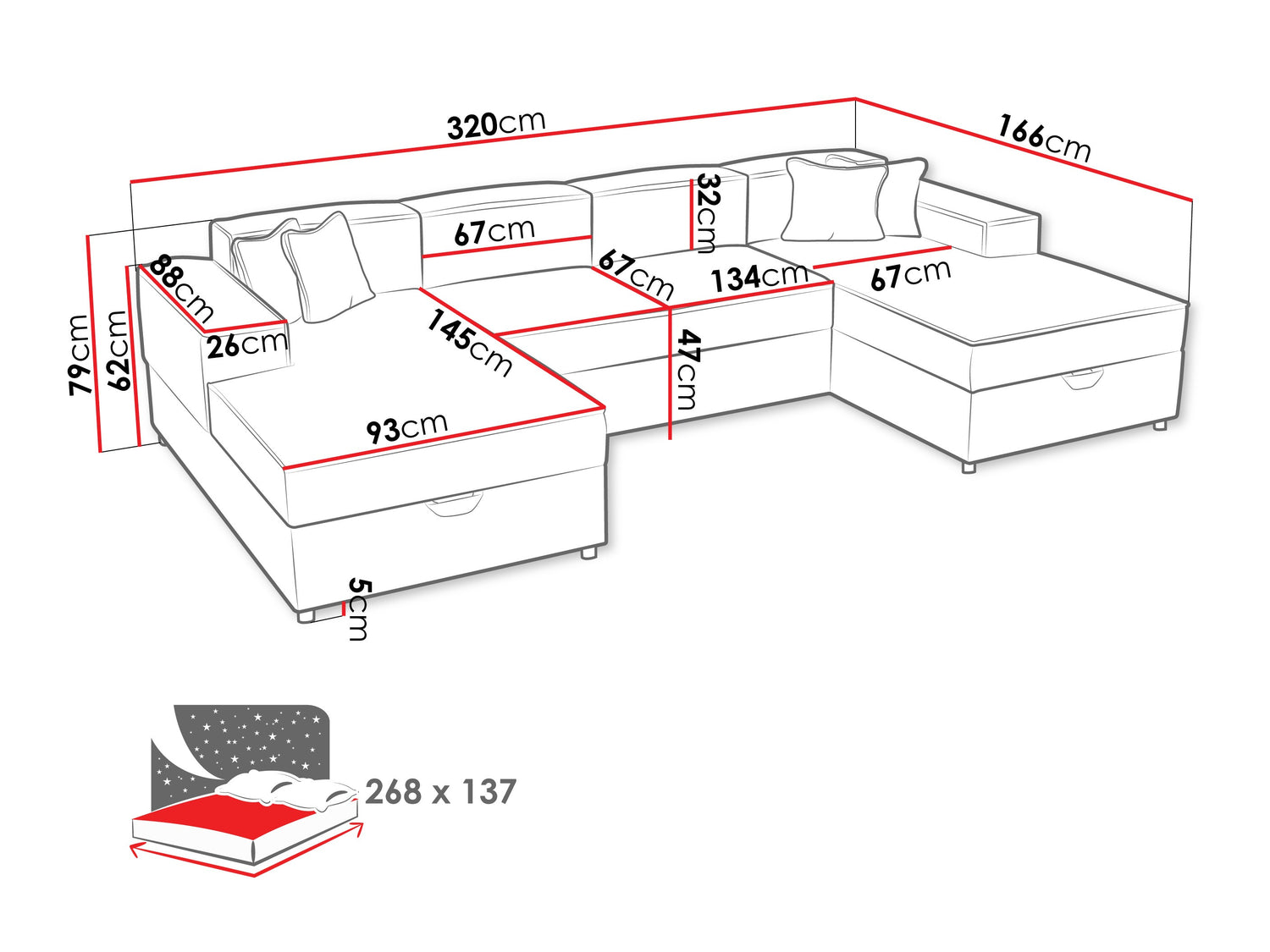 • Bredde på soveområde