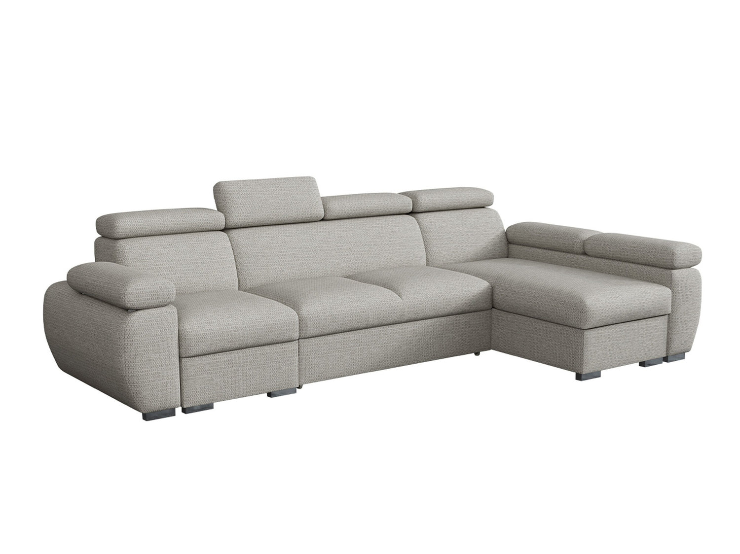 Når du ser på sofaen forfra, vil den forlængede del af højre-varianten være på din højre side. Den valgte hjørnevariant bør forbedre rummets flow og gøre det let at bevæge sig rundt i rummet.