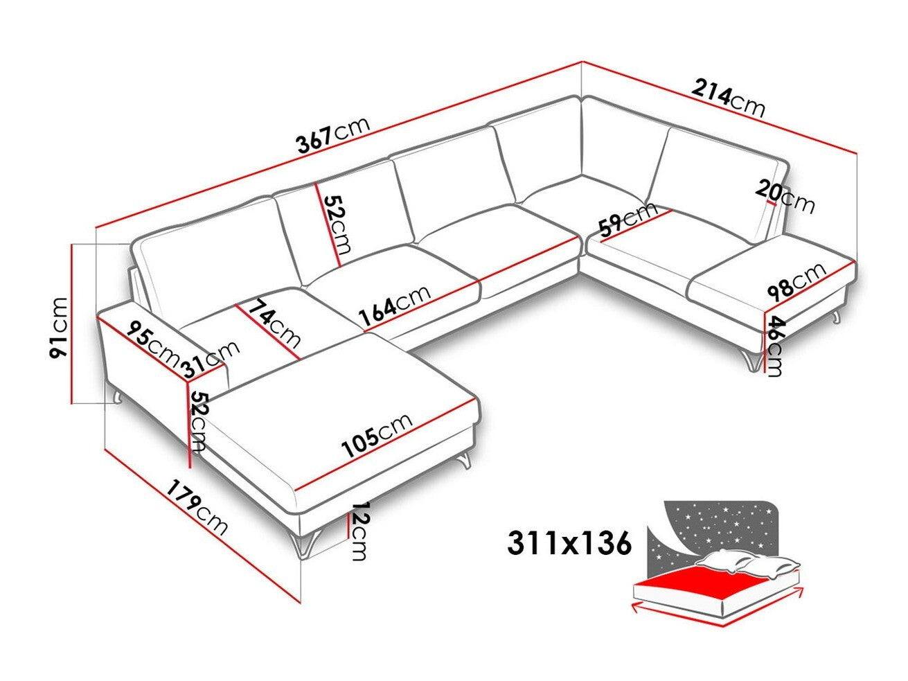 • Med sovefunktion