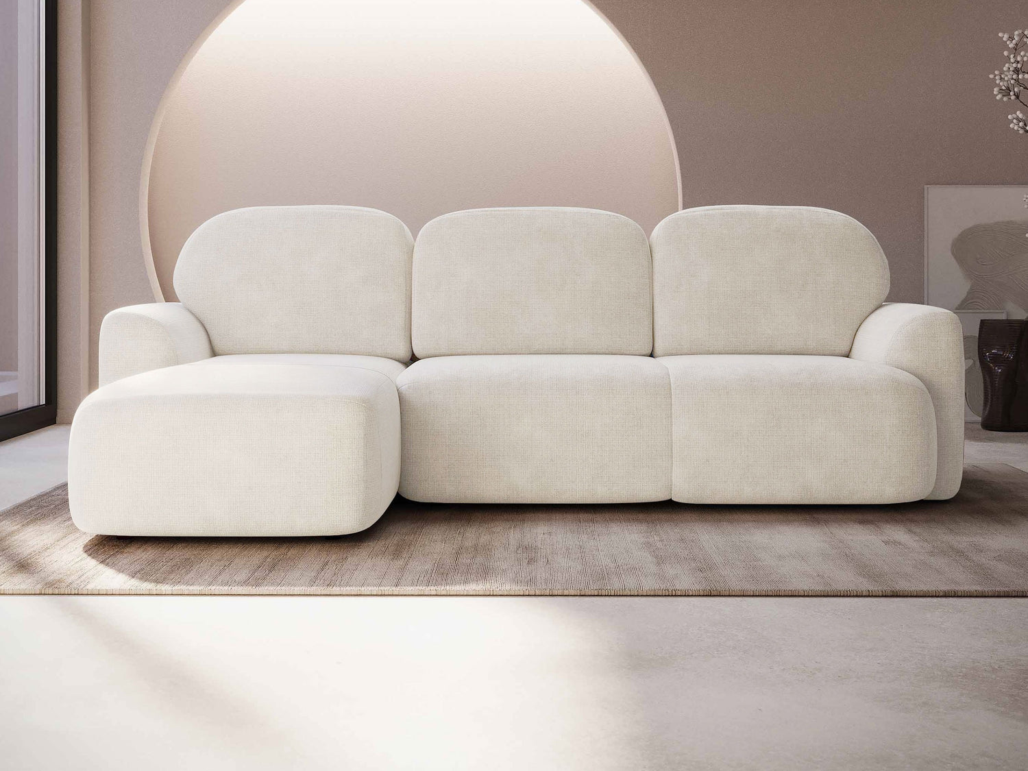 Når du ser på sofaen forfra, vil den forlængede del af venstre-varianten være på din venstre side. Den valgte hjørnevariant bør forbedre rummets flow og gøre det let at bevæge sig rundt i rummet.
