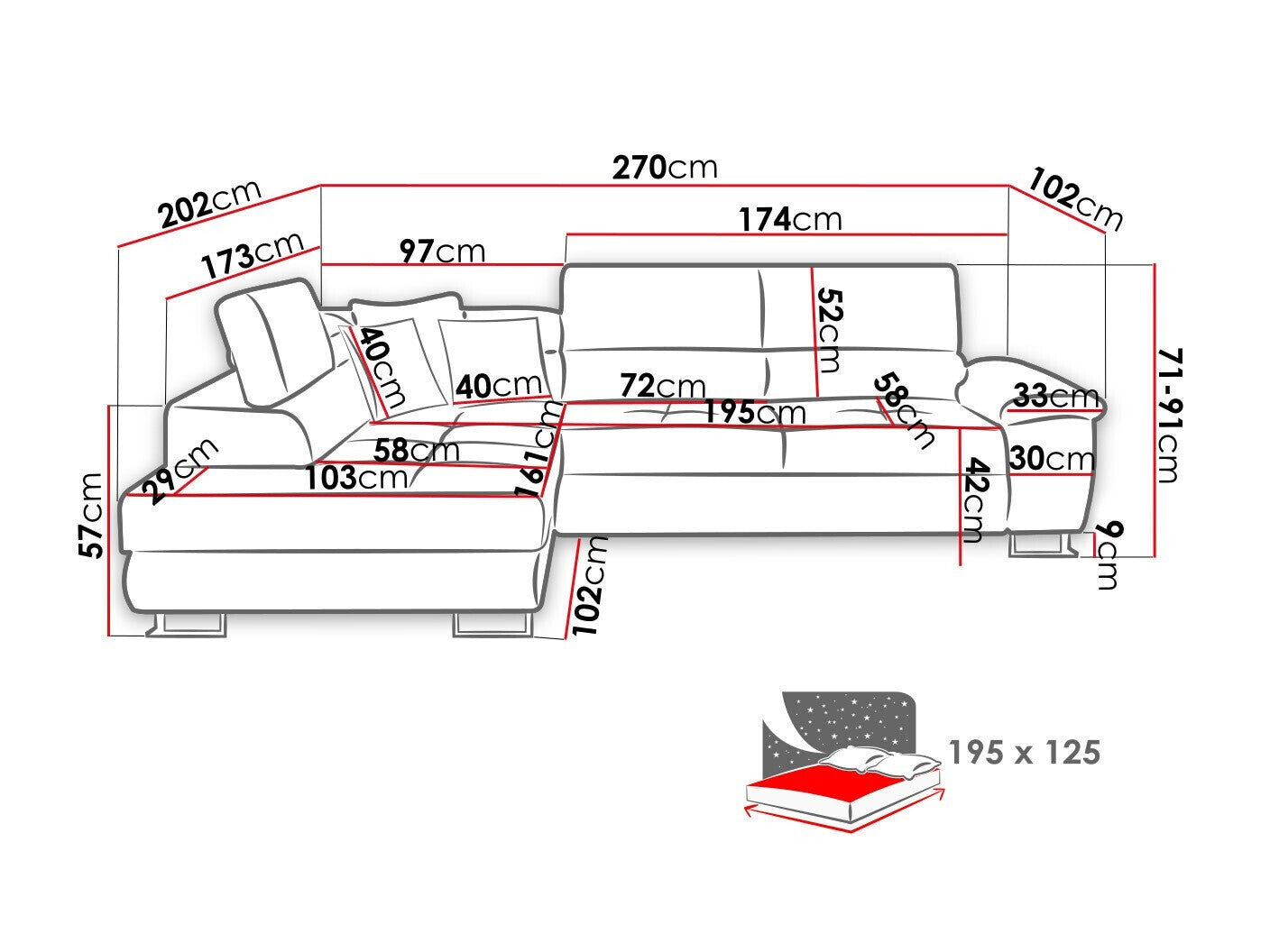 Længde på soveområde195 cm