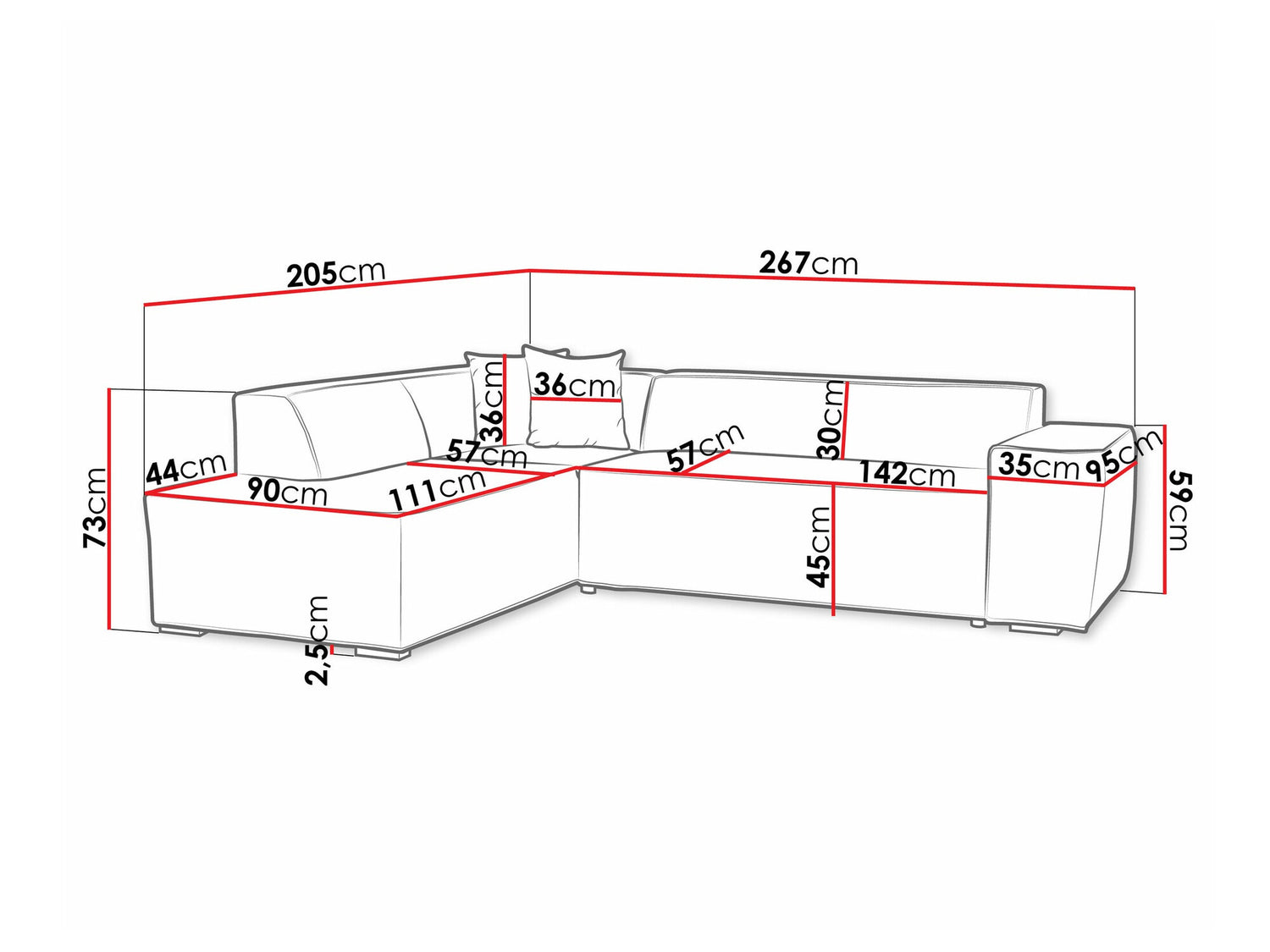 Armlænets dybde95 cm