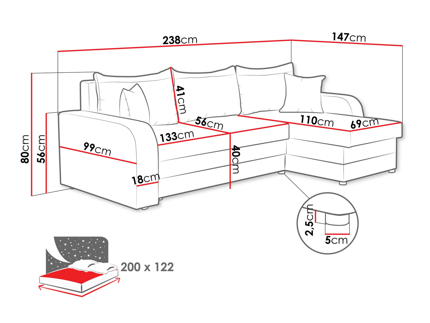 Stoffet på bagsiden af møblet er ikke anderledes end stoffet på hovedmøblet. Du kan placere møbler med denne funktion midt i rummet.