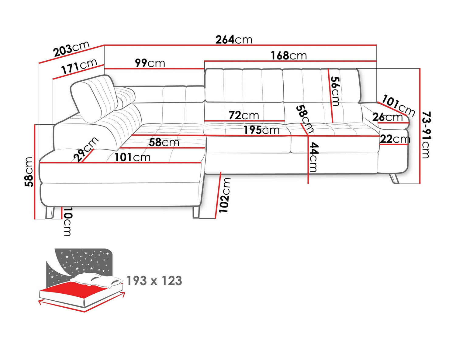 Længde på soveområde193 cm