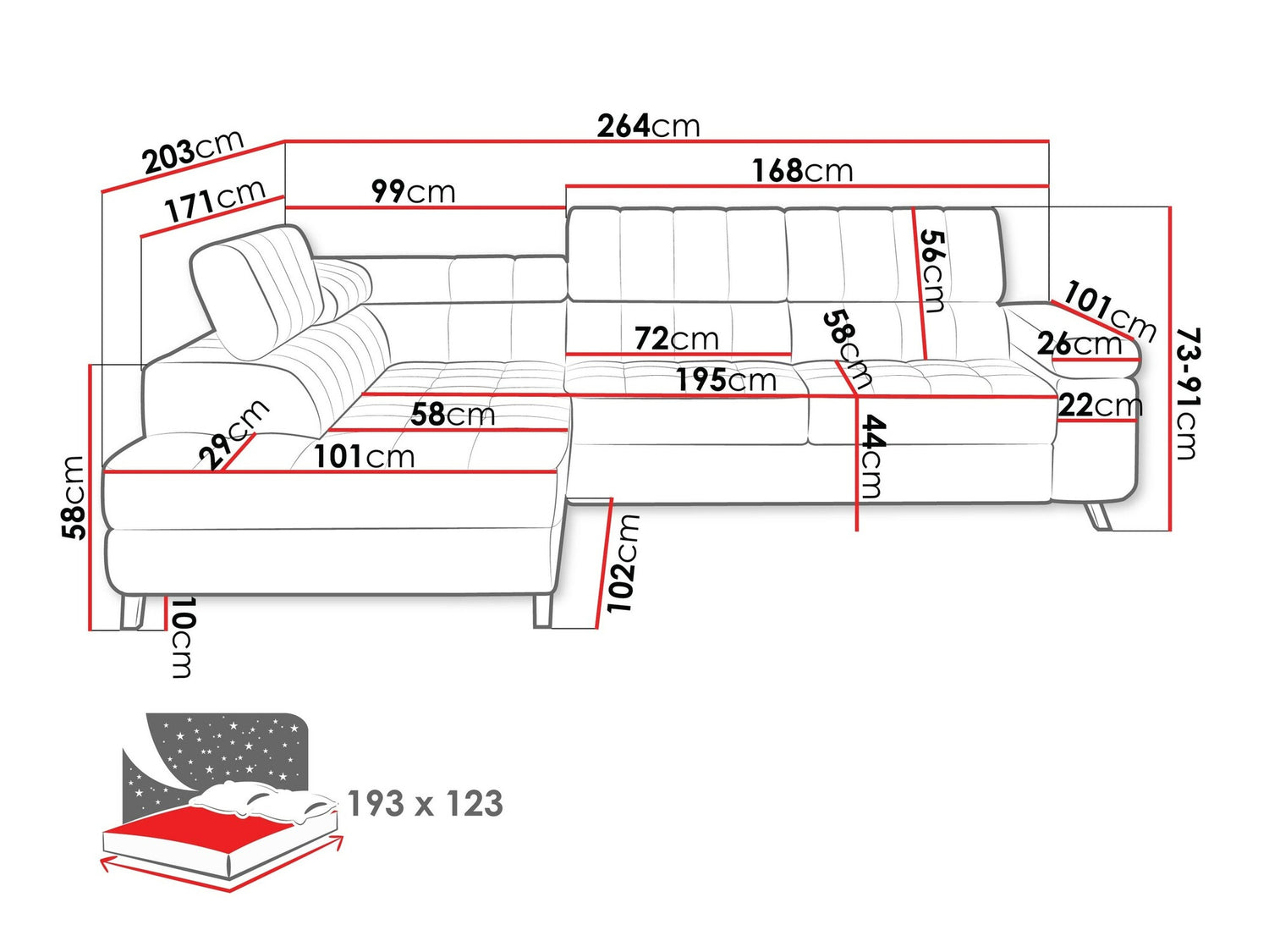 Længde på soveområde193 cm