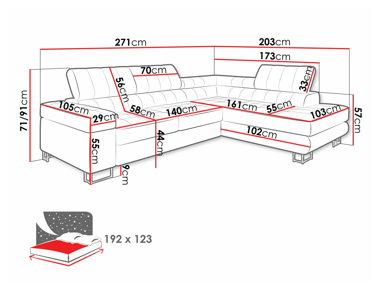 Længde på soveområde192 cm