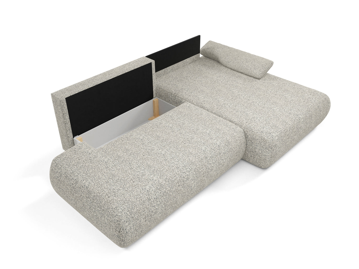 Når du ser på sofaen forfra, vil den forlængede del af højre-varianten være på din højre side. Den valgte hjørnevariant bør forbedre rummets flow og gøre det let at bevæge sig rundt i rummet.
