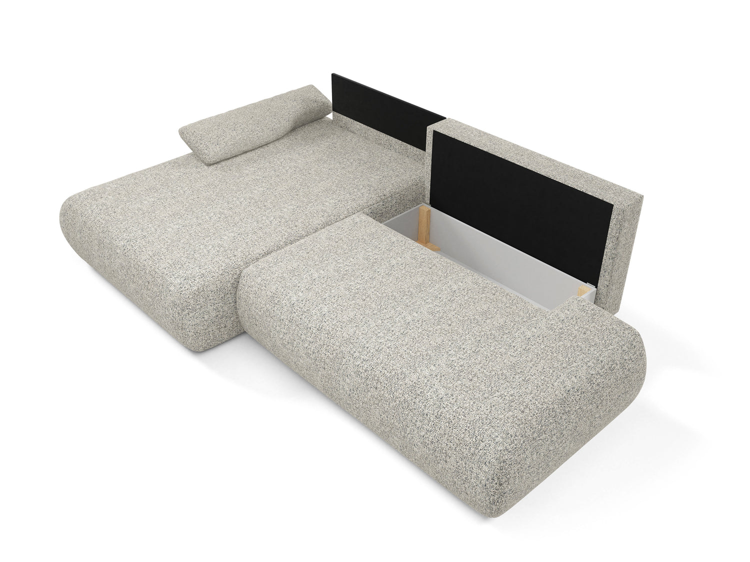Når du ser på sofaen forfra, vil den forlængede del af venstre-varianten være på din venstre side. Den valgte hjørnevariant bør forbedre rummets flow og gøre det let at bevæge sig rundt i rummet.