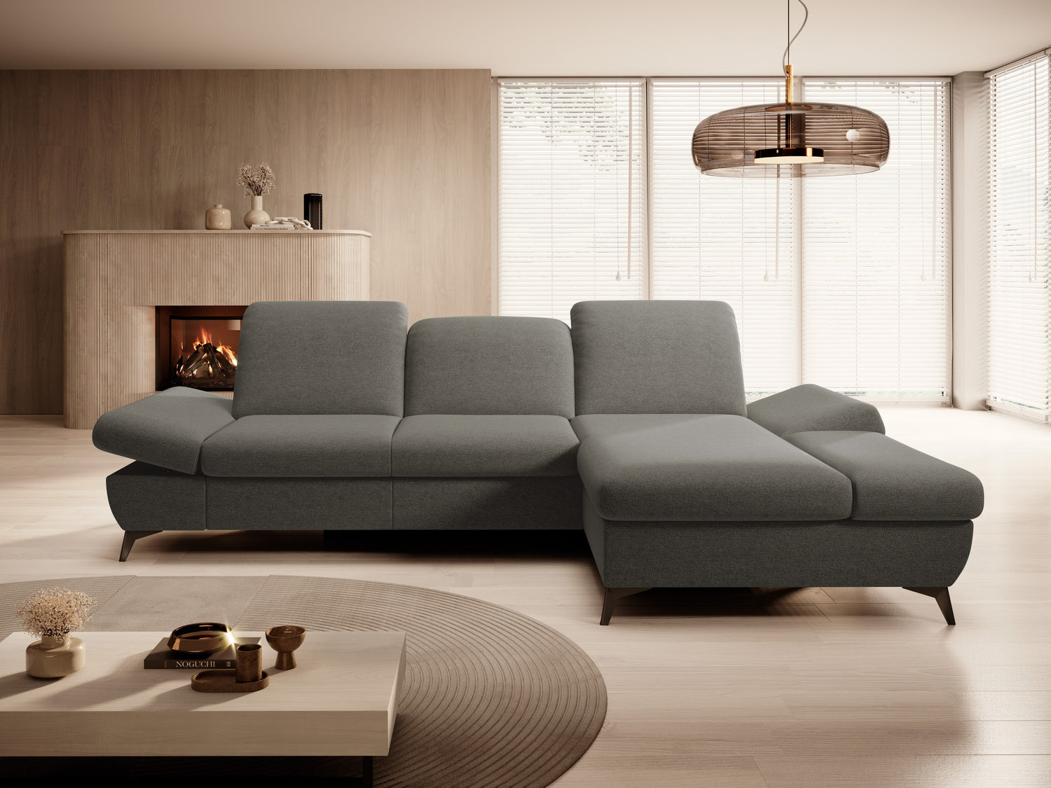 Når du ser på sofaen forfra, vil den forlængede del af højre-varianten være på din højre side. Den valgte hjørnevariant bør forbedre rummets flow og gøre det let at bevæge sig rundt i rummet.