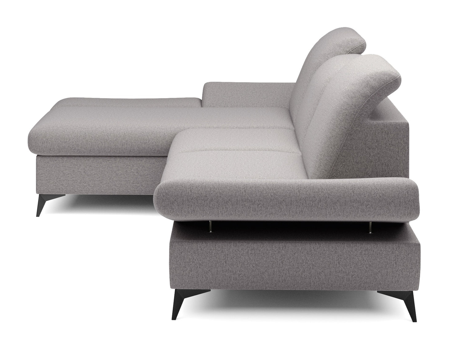 Når du ser på sofaen forfra, vil den forlængede del af venstre-varianten være på din venstre side. Den valgte hjørnevariant bør forbedre rummets flow og gøre det let at bevæge sig rundt i rummet.