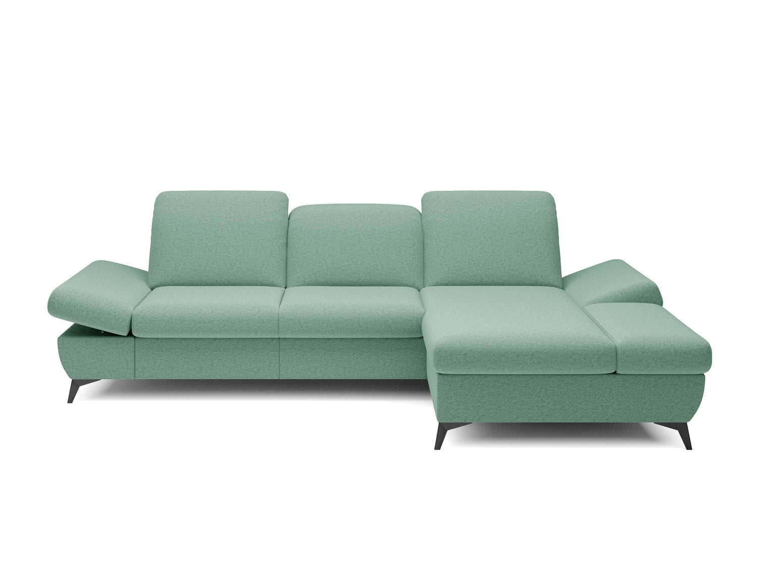 Når du ser på sofaen forfra, vil den forlængede del af højre-varianten være på din højre side. Den valgte hjørnevariant bør forbedre rummets flow og gøre det let at bevæge sig rundt i rummet.