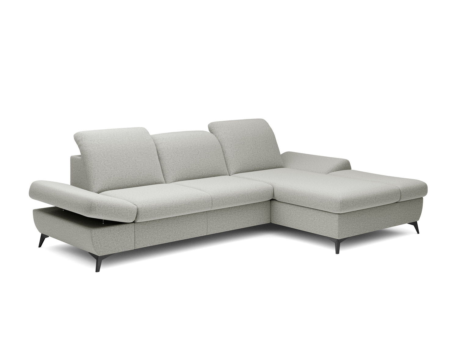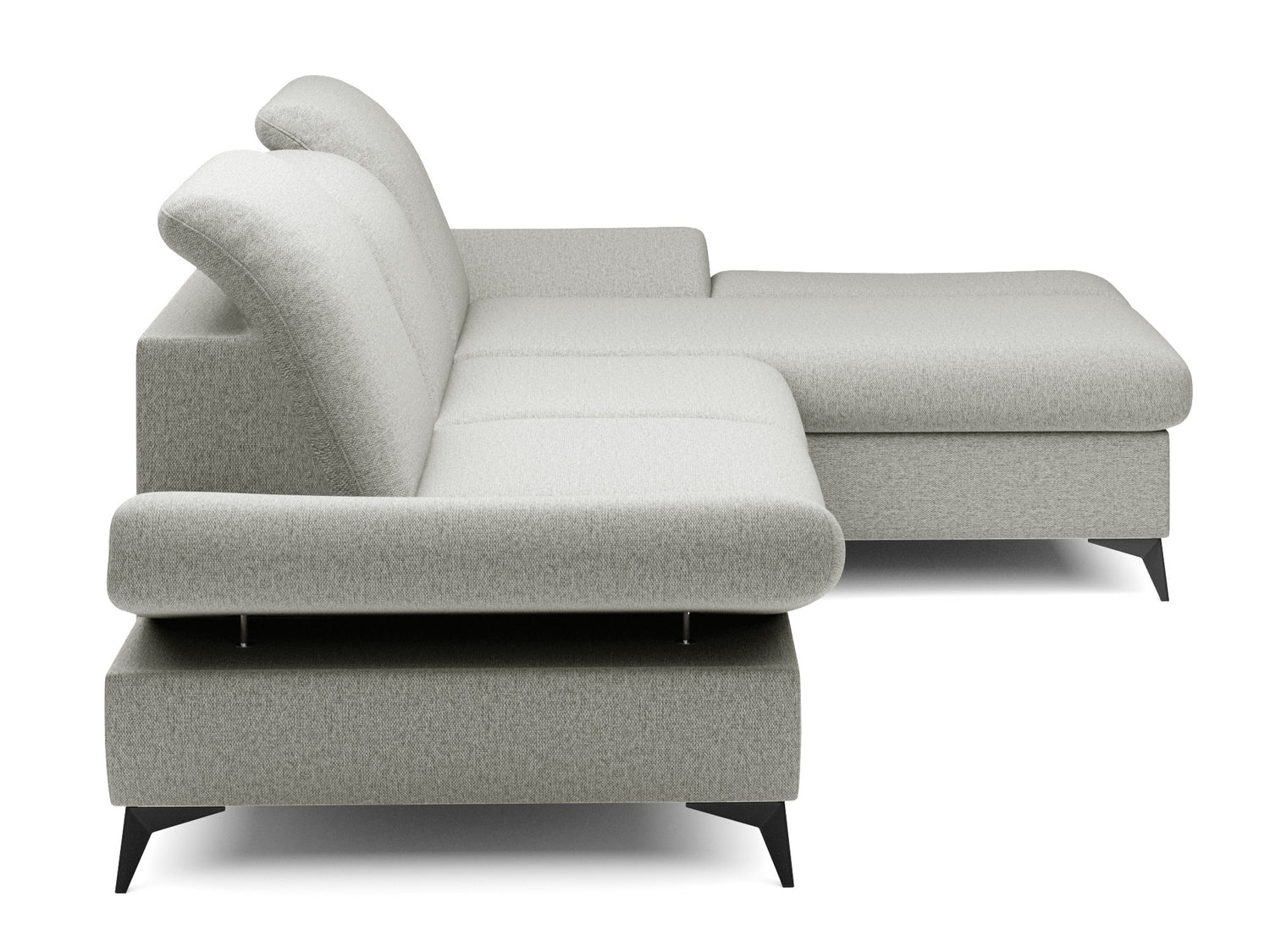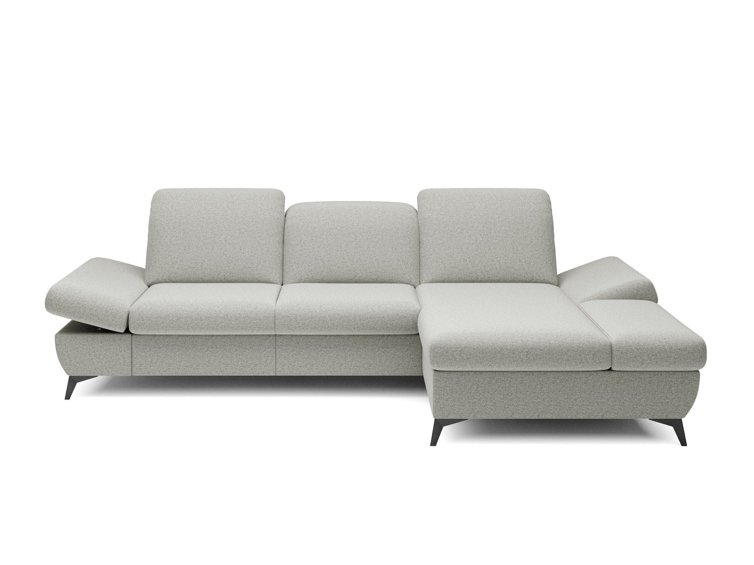 Når du ser på sofaen forfra, vil den forlængede del af højre-varianten være på din højre side. Den valgte hjørnevariant bør forbedre rummets flow og gøre det let at bevæge sig rundt i rummet.