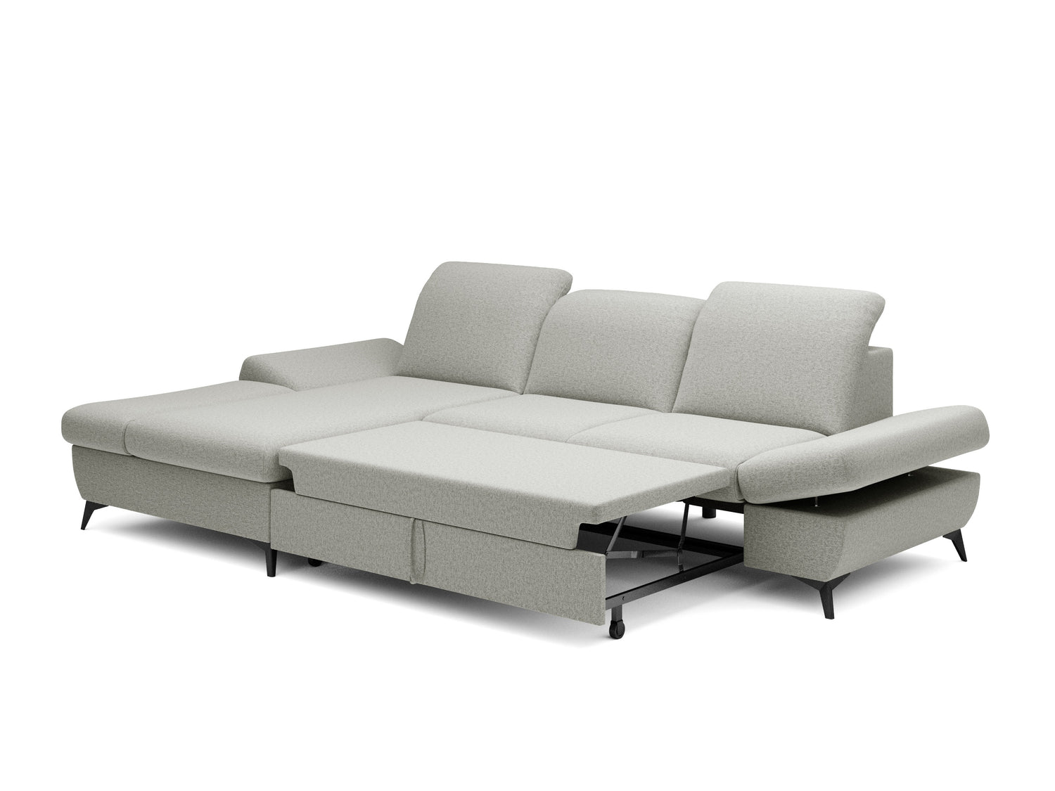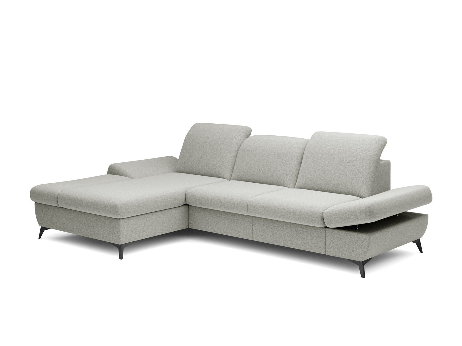 Når du ser på sofaen forfra, vil den forlængede del af venstre-varianten være på din venstre side. Den valgte hjørnevariant bør forbedre rummets flow og gøre det let at bevæge sig rundt i rummet.