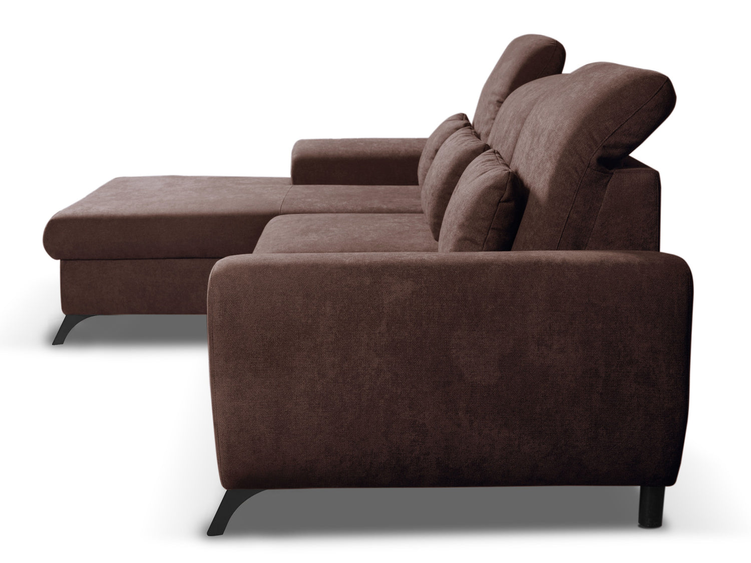 Når du ser på sofaen forfra, vil den forlængede del af venstre-varianten være på din venstre side. Den valgte hjørnevariant bør forbedre rummets flow og gøre det let at bevæge sig rundt i rummet.