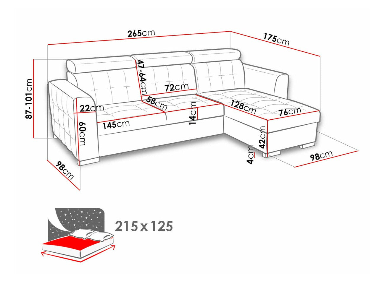 Når du ser på sofaen forfra, vil den forlængede del af højre-varianten være på din højre side. Den valgte hjørnevariant bør forbedre rummets flow og gøre det let at bevæge sig rundt i rummet.