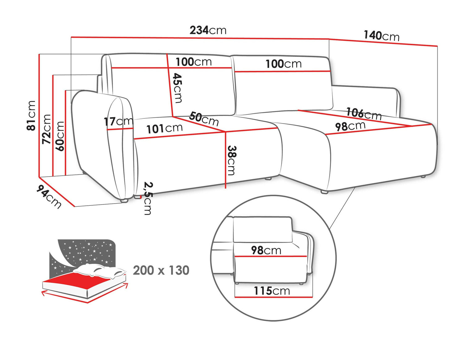 Stoffet på bagsiden af møblet er ikke anderledes end stoffet på hovedmøblet. Du kan placere møbler med denne funktion midt i rummet.