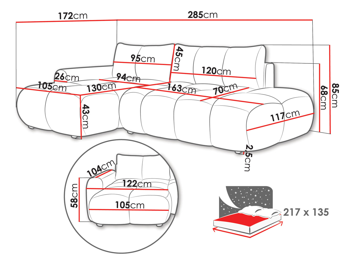 Længde på soveområde217 cm