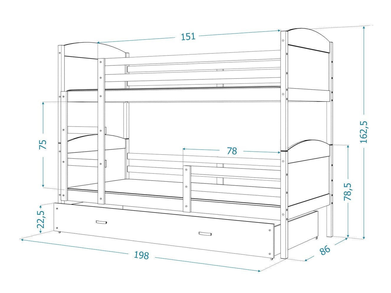 Størrelse på madras80 x 190 cm