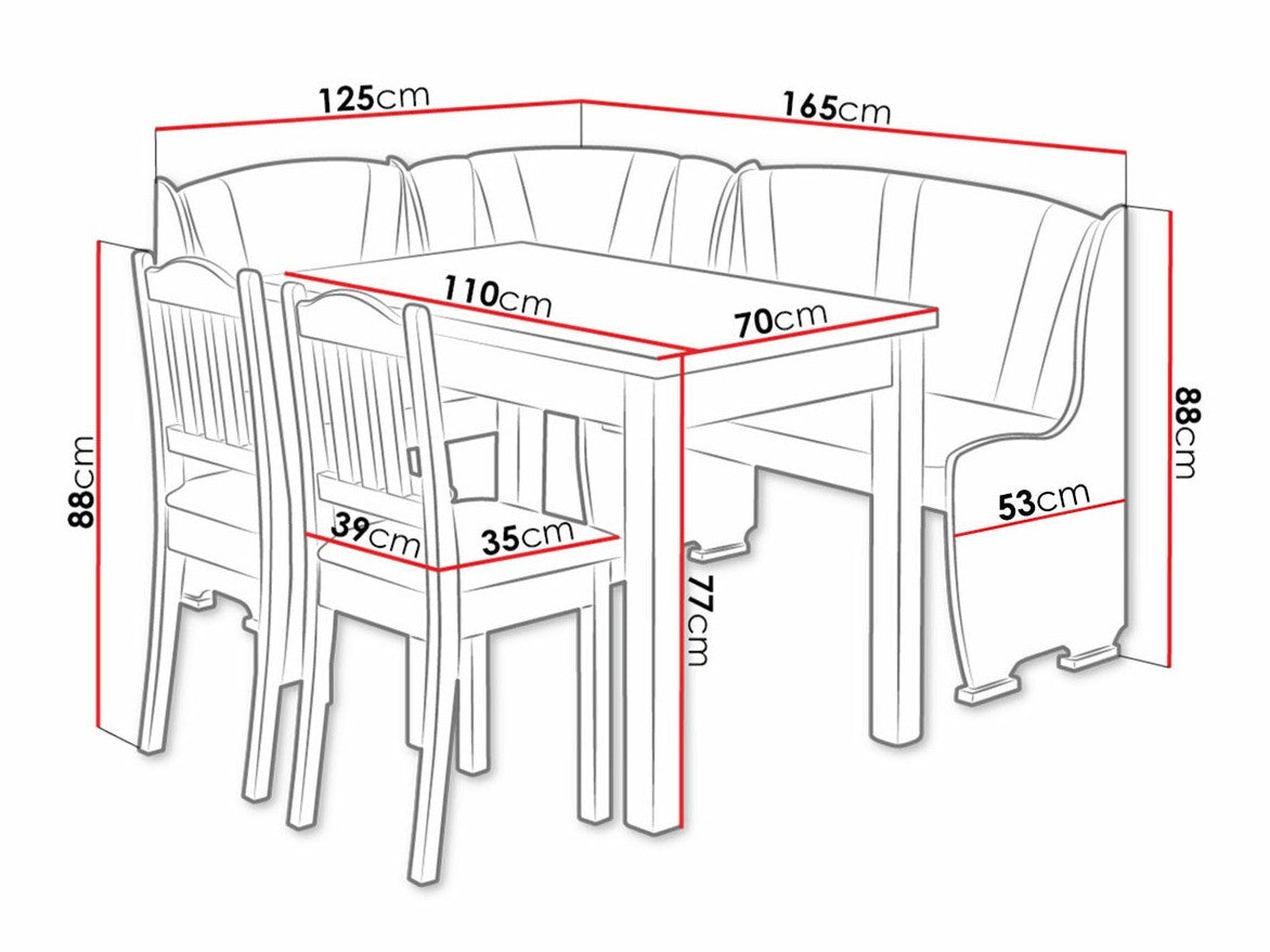 Bænk dimensioner88 x 165 x 125 cm