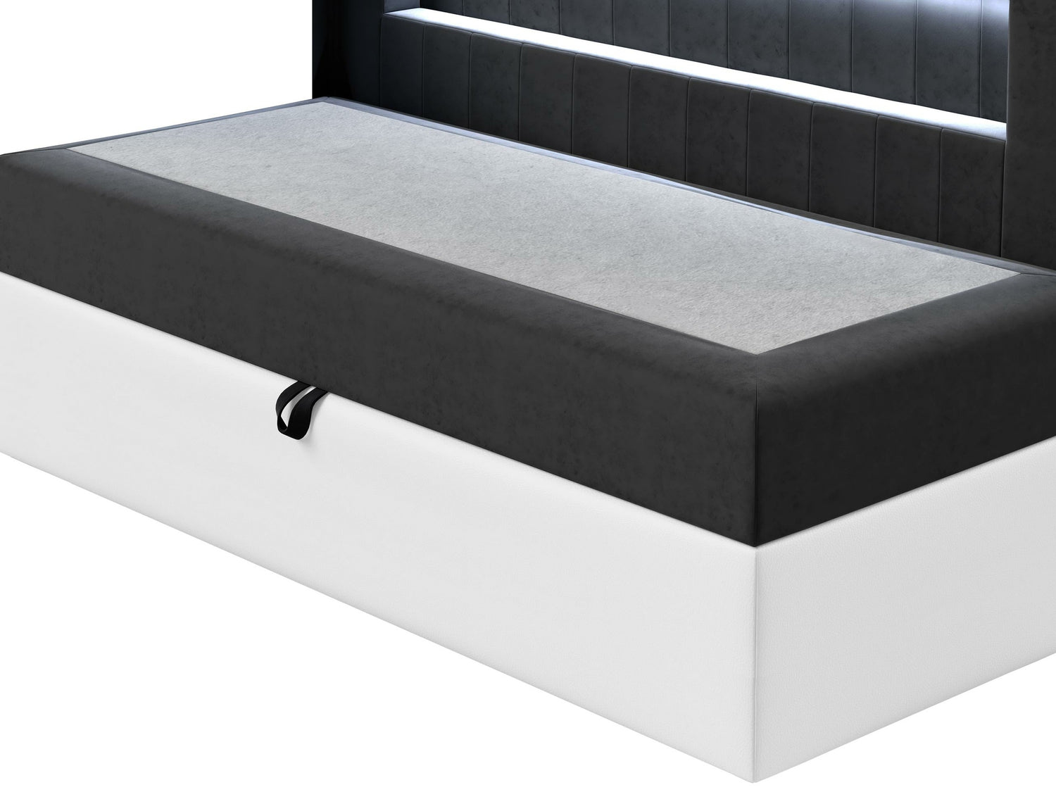 Toffet under topmadrassen kan afvige fra sengens hovedstof. Farven eller teksturen kan variere afhængigt af producenten.
