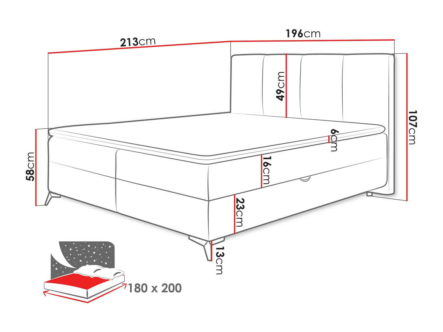 Sengekasse dimensioner22 x 86 x 197 cm